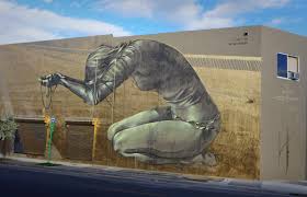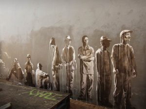 “The Long Wait”, a 2012 series of Faith 47’s street art in Johannesburg comments on one of the most turbulent times in South African history. Murals of people waiting are weaved in and around the city of Johannesburg, the aim of the works is to show that South Africans have been waiting for justice, wages, service delivery, jobs, assistance, an honest politician, depicting that the waiting has gone on for too long and much valuable time has been lost.
